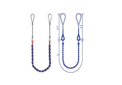 安全保證:4倍安全系數(shù)。壓制鋼絲繩索具長(zhǎng)度L1=50倍的鋼絲繩直徑。插編鋼絲繩索具長(zhǎng)度L1